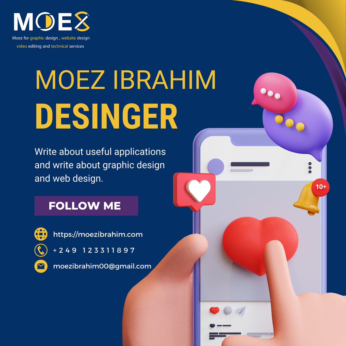 مصمم جرافيك مبدع وموهوب لدي خبرة واسعة في تصميم العلامات التجارية ، الهوية البصرية ، التصميم الإعلاني وتصميم الطبوعات